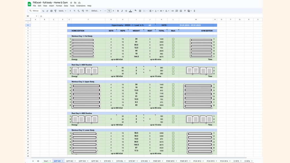 • Relying on the "FitExcel - Full Body - Home & Gym" program is at your own risk.